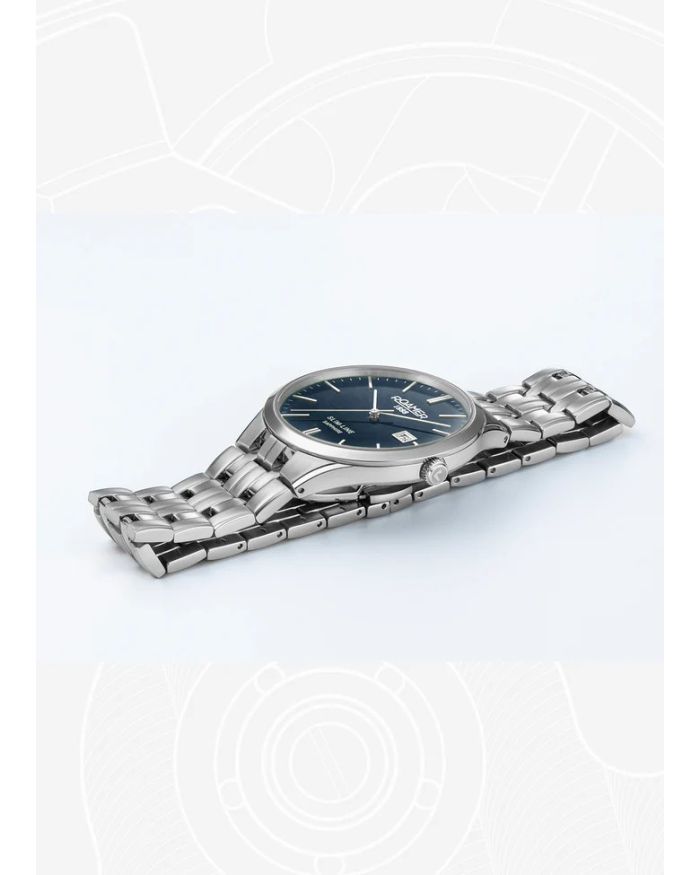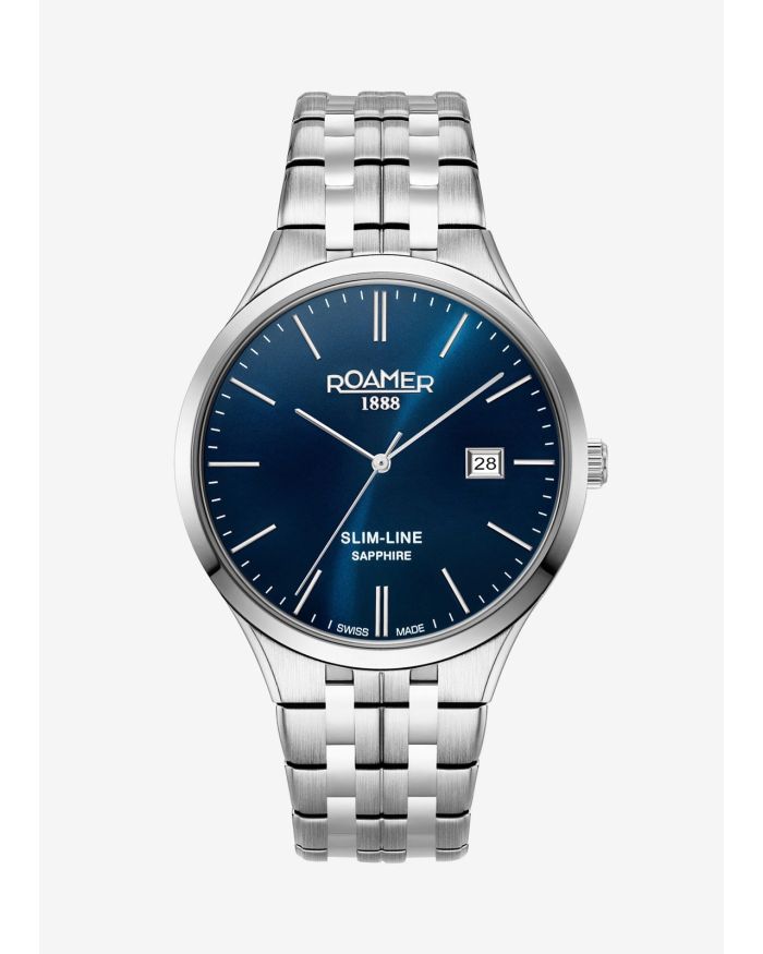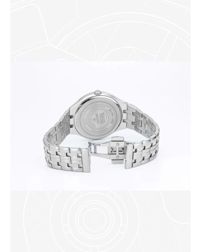 With a sleek, streamline style, low height and delicate features the 40 mm SLIM-LINE CLASSIC is an outstanding example of timelessly beautiful aesthetics. he stainless steel case houses a Swiss Made quartz movement Ronda 715, the dial and is protected by a mineral crystal dial window. Smooth bezel and fluted crown pair elegantly with the solid bracelet in stainless steel or bi-color design.