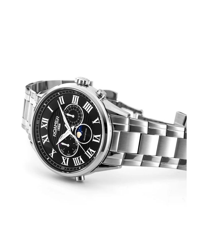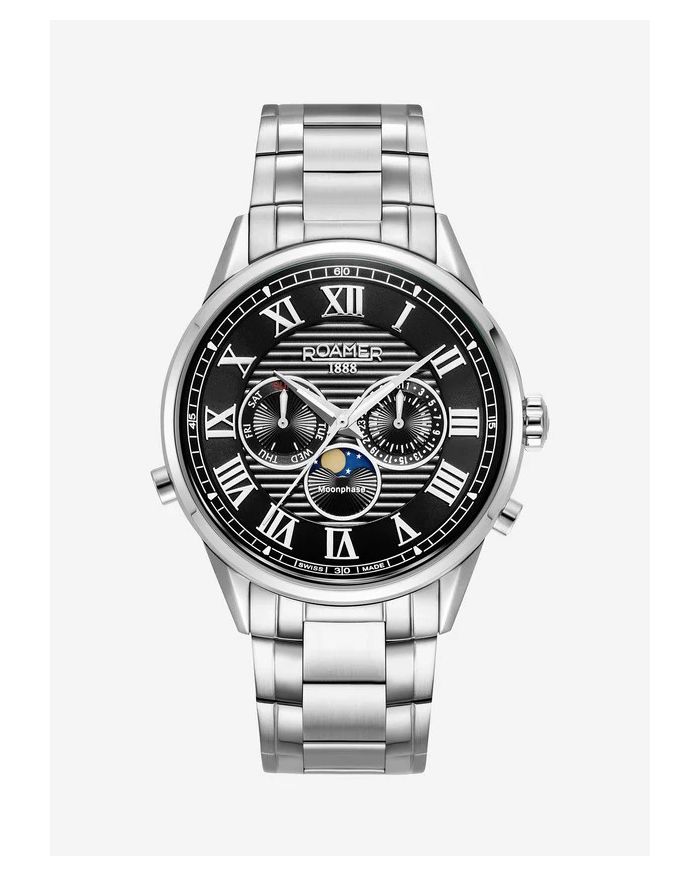 Humankind has always been fascinated by the moon; quite a few still see a spiritual influence in the moon’s phases. Howsoever, watches featuring a moon phase compilation are striking timepieces with a very special touch. With 3 central hands and 3 sub-dial displays, the very dressy SUPERIOR MOONPHASE has all the hallmarks of a clean and simple moon phase watch. The beautifully structured dial background with line pattern guilloche, straight baton markers, and a discreet minuterie edged by Roman numerals give this watch a unique look. Day- and date sub-dials form an awesome trio with the moonphase dial at 6 o’clock. The round 43 mm stainless steel case is also available in two-tone design with rose gold plating.