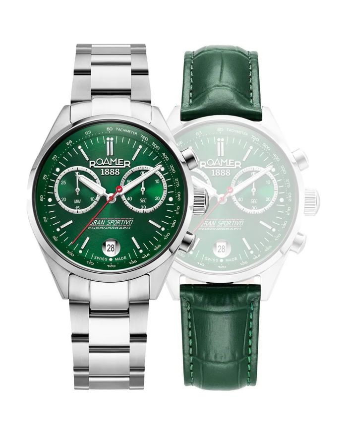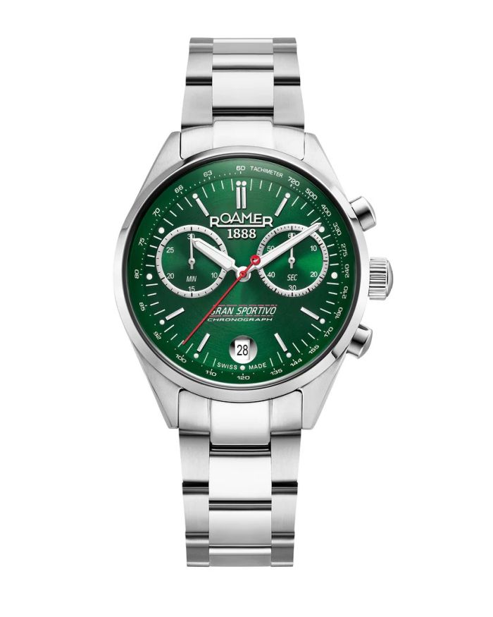 This Roamer watch has a case made of stainless steel with a diameter of 41.5 mm and is fitted with a stainless steel band. Inside the case lies a Ronda movement and the watch features a Single anti-reflective sapphire crystal. The watch is 10 ATM. This means the watch is suitable for swimming