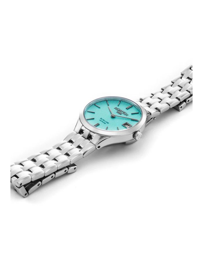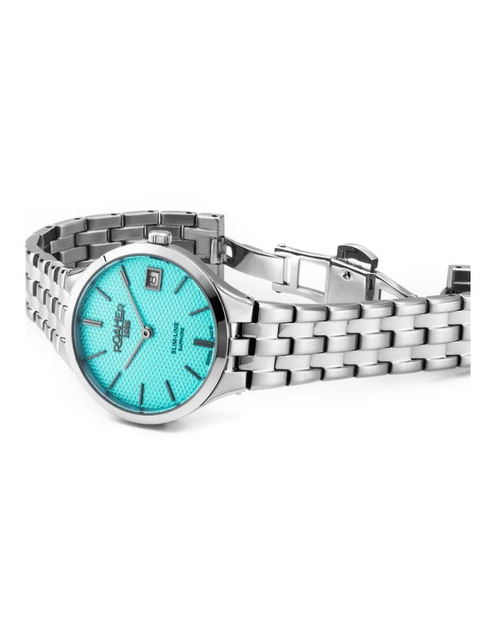 The female version of the timelessly beautiful SLIM-LINE CLASSIC features an almost identical look with smooth bezel, fluted crown topped with the ROAMER-“R”, and delicately framed date window at 3 o’clock. All these details are carefully paired with the solid bracelets’ design and appear in stainless steel, with gold- respectively rose-gold plating or in two-tone design. Compared to the Gents’ model, the SLIM-LINE CLASSIC LADIES features a smaller 30 mm case, and the minuterie has been omitted in order to keep the dial design pure and uncluttered.